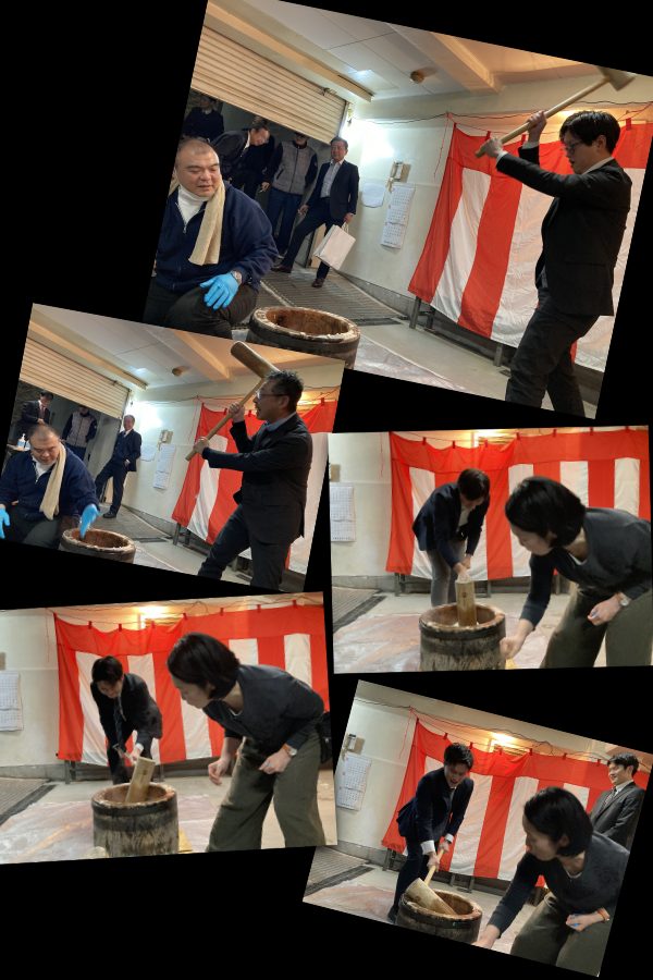 京橋紙業は餅つきをつきます。
